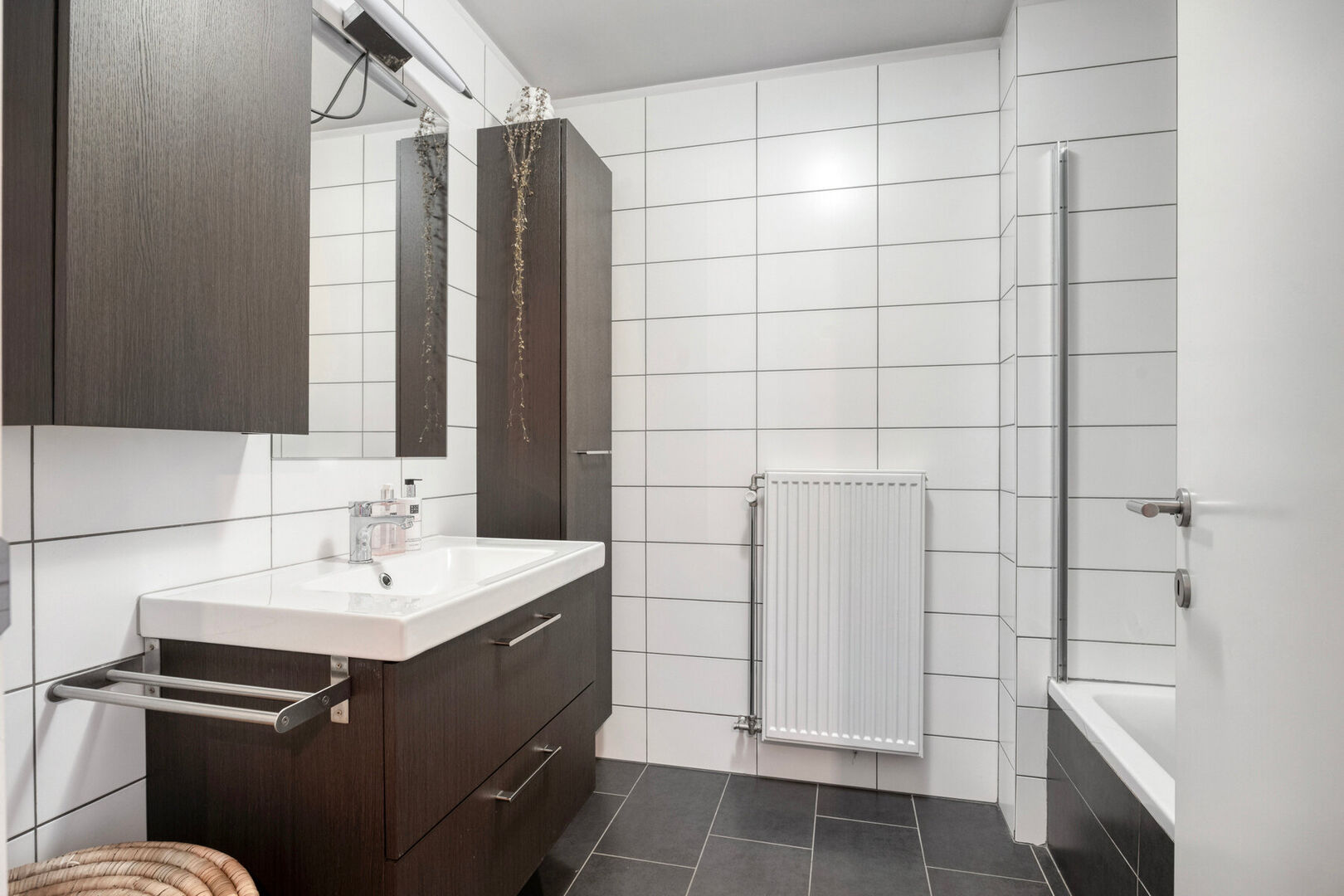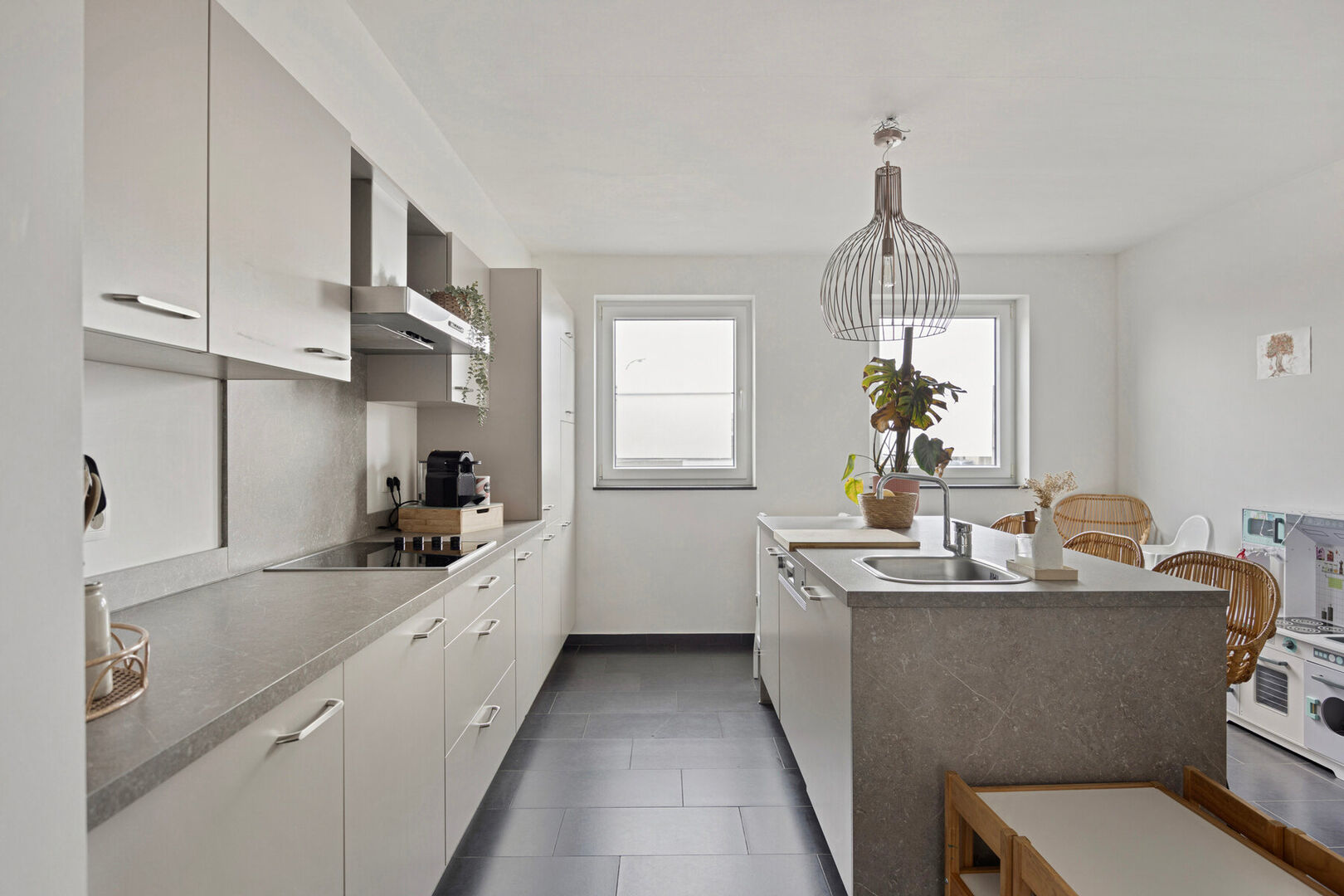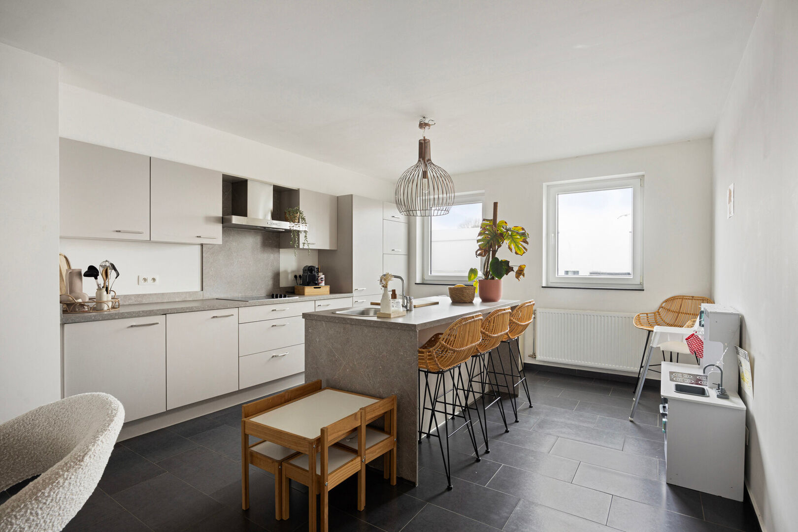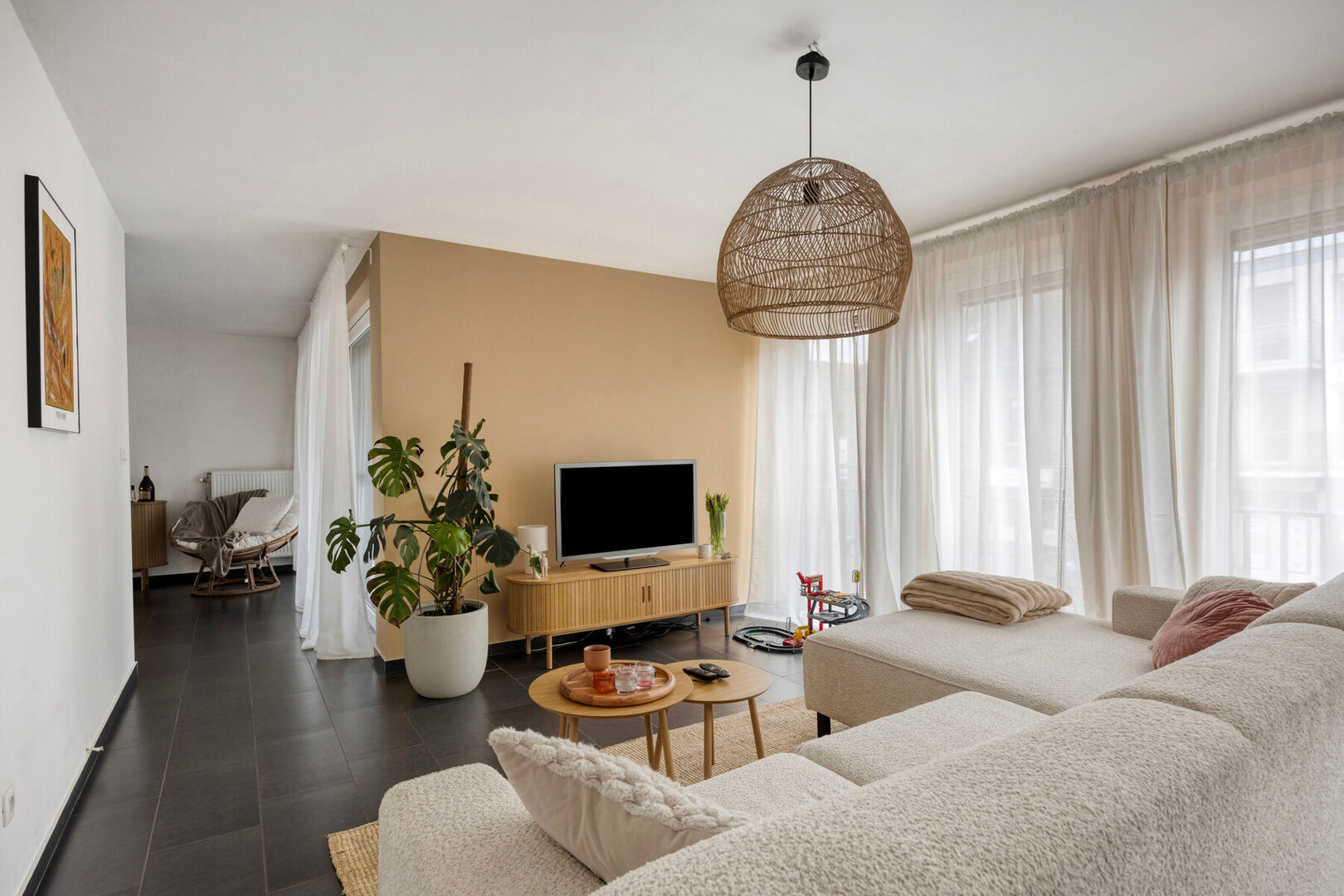 Het appartement is gelegen op de eerste verdieping en voorzien van centrale verwarming op aardgas d.m.v. radiatoren en bevat pvc ramen met dubbele beglazing. Het appartement is degelijk afgewerkt en het hoeft dan ook niet te verrassen dat je hier van een gunstig EPC-label A geniet. De leefruimte met aansluitende keuken beschikt over voldoende lichtinval met de vele raampartijen en het schuifraam naar het terras. Verder bevinden zich in het appartement 2 aangename slaapkamers. Ook beschik je over twee parkeerplaatsen, één voor het gebouw en één in de kelder samen met een extra berging.