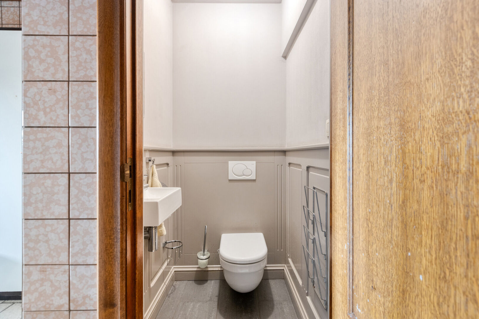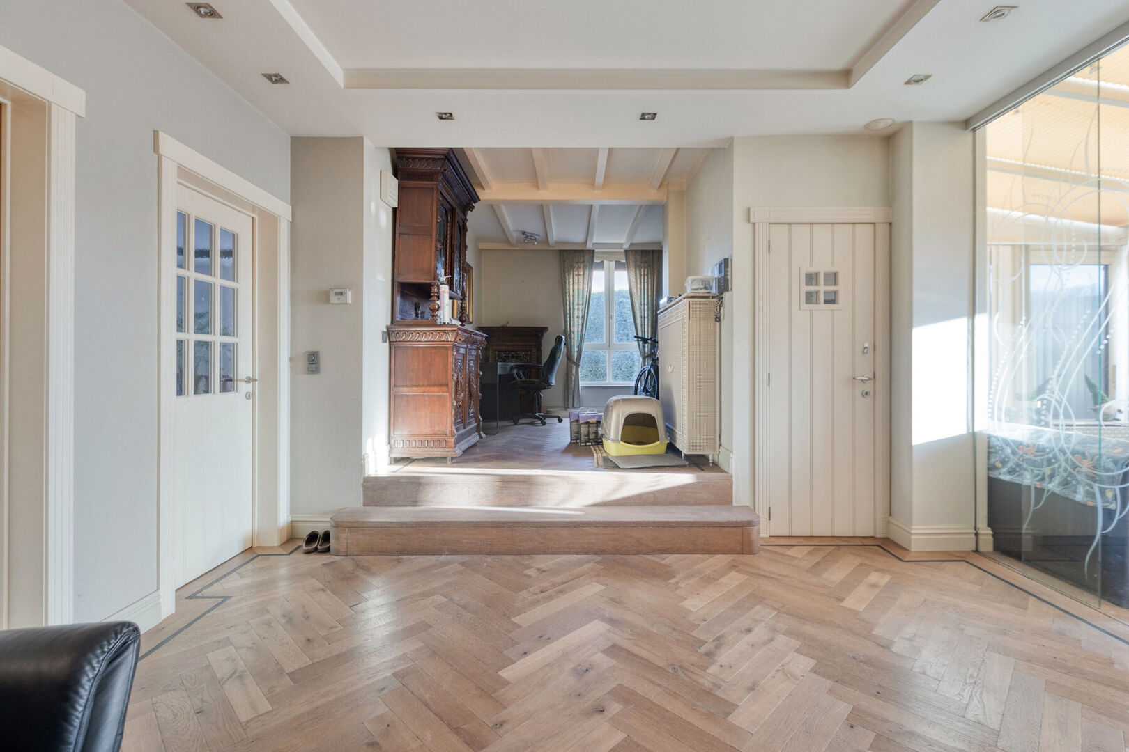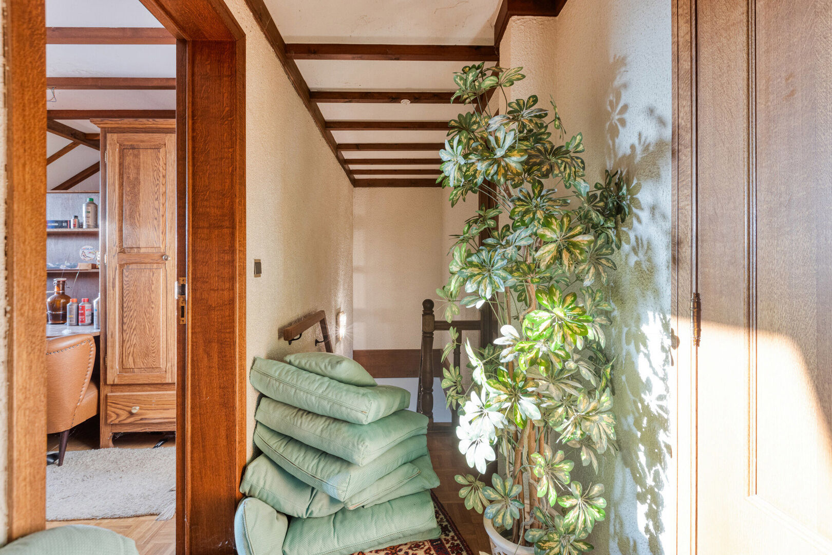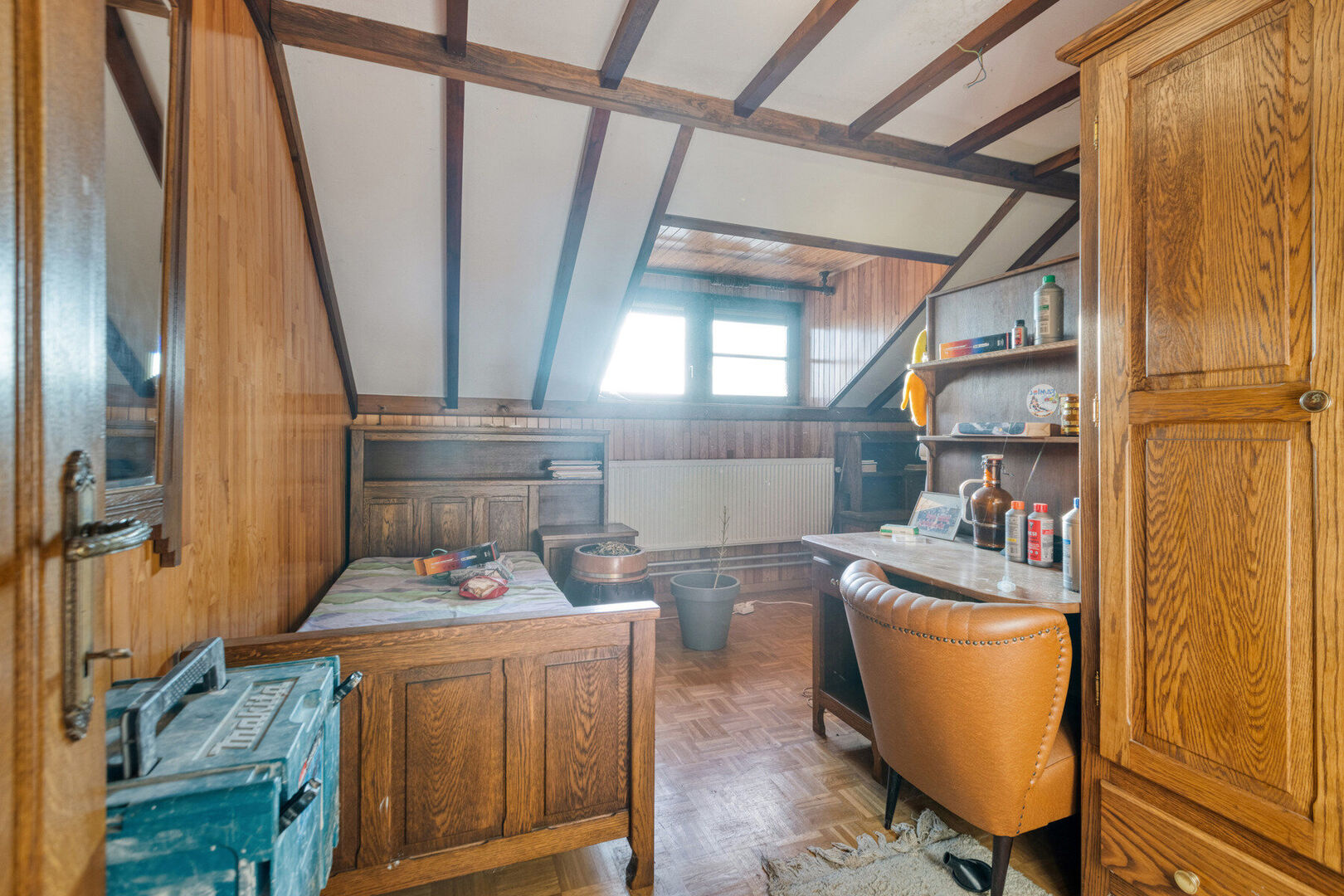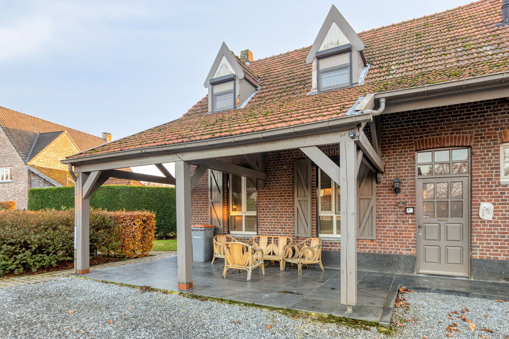 Ook de aanpalende woning is met haar vijf slaapkamers comfortabel ingericht. De slaapkamers op het gelijkvloers hebben een royaal formaat. De woonkamer met verhoogd gedeelte biedt toegang tot de lichtrijke veranda. De keuken is volledig uitgerust. Je geniet hier bovendien van een luxueuze badkamer met een dressinggedeelte en wasvoorzieningen. Verder geniet je van een praktisch ingerichte wasplaats/bergplaats, een opslagplaats en een apart toilet. Buiten kan je heerlijk vertoeven op het terras. Verder op het perceel bevindt zich een tuinhuis dat ideaal is als (wo)mancave. Op de eerste verdieping bevinden zich nog eens 3 slaapkamers, een badkamer en een berging.