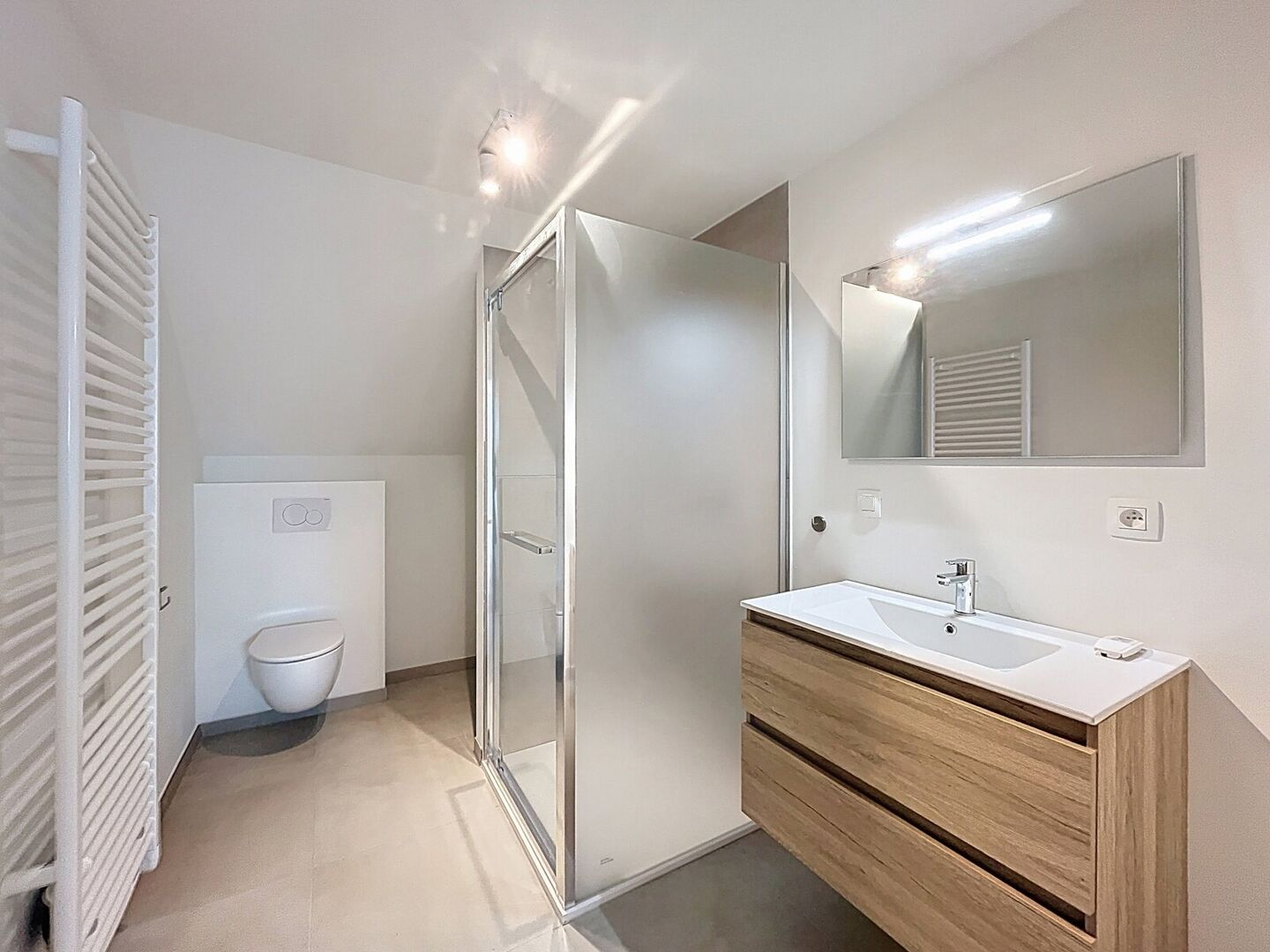 Deze stijlvolle, halfopen bebouwing wacht op haar eerste bewoners. De pas afgewerkte woonst beschikt over centrale verwarming op aardgas door middel van vloerverwarming op het gelijkvloers en over elektrische verwarming op de 1e verdieping. Verder is de woning zorgvuldig afgewerkt met PVC ramen met dubbele beglazing, een ventilatiesysteem C en 10 zonnepanelen.