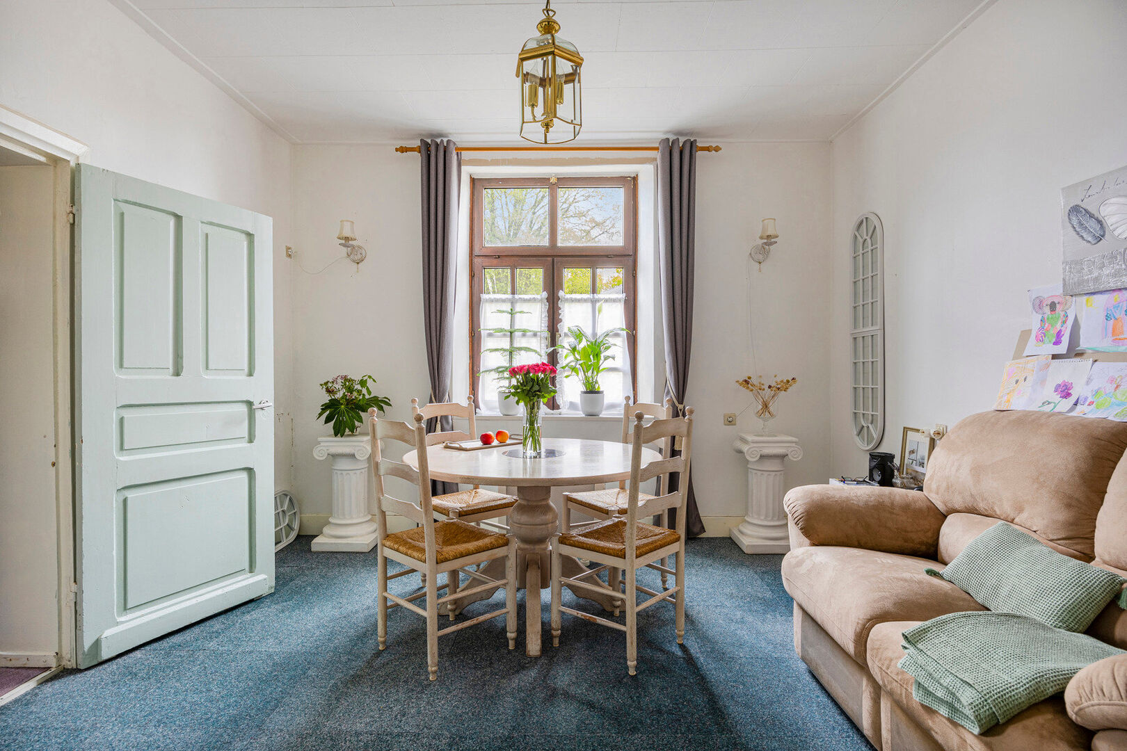 De woning ademt geschiedenis. De uitvoering in witgekalkte baksteen met houten kozijnen en kenmerkende gepikte plint nemen je mee terug naar de 18e eeuw. Ook tal van andere elementen in deze woning doen het verleden spreken. Zo zijn er onder meer het bepleisterde plafond met zichtbare moer- en kinderbalken, het chronogram boven de voordeur, de originele kalkstenen vloertegels in de hal en de deur met oculus links in de gevel.