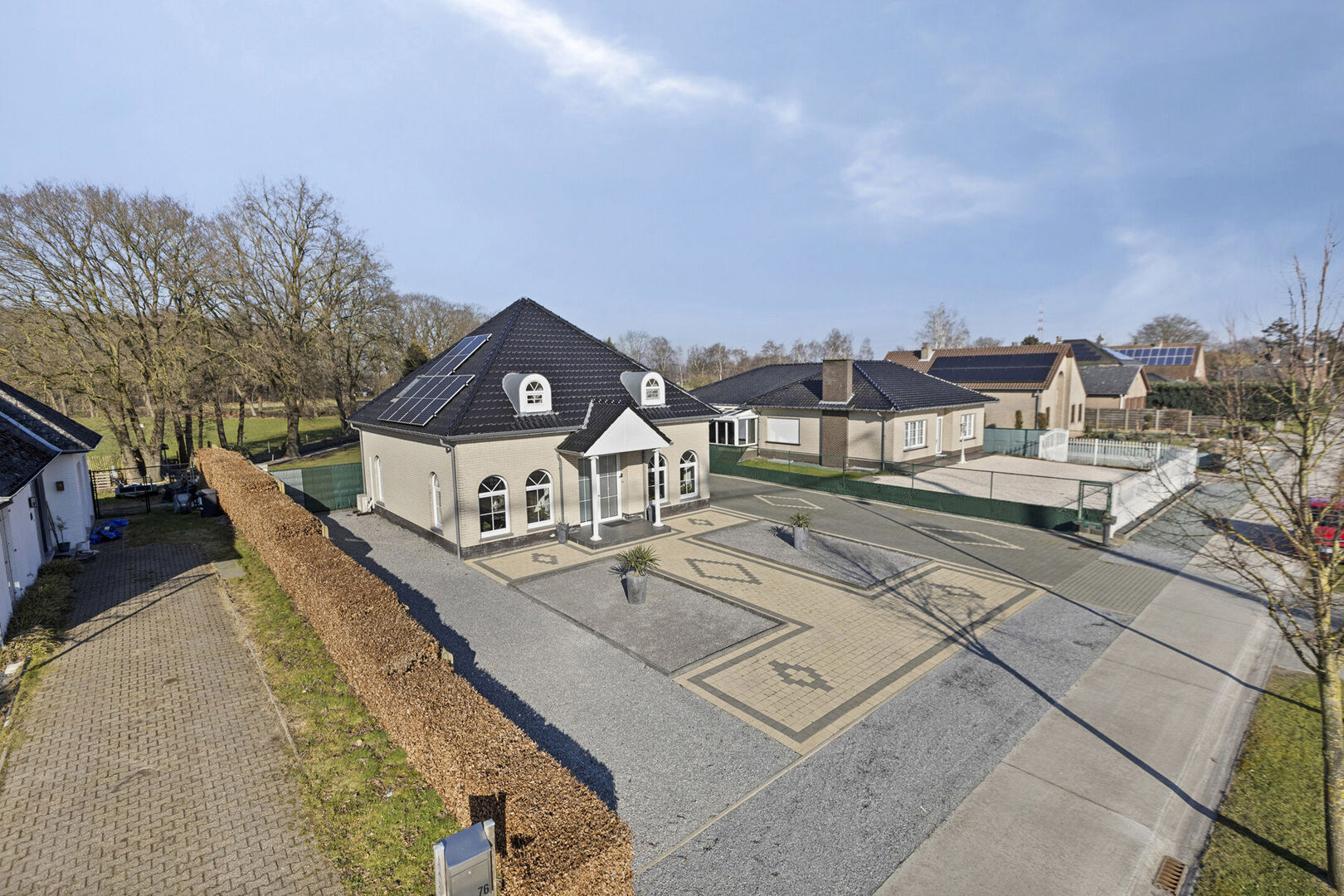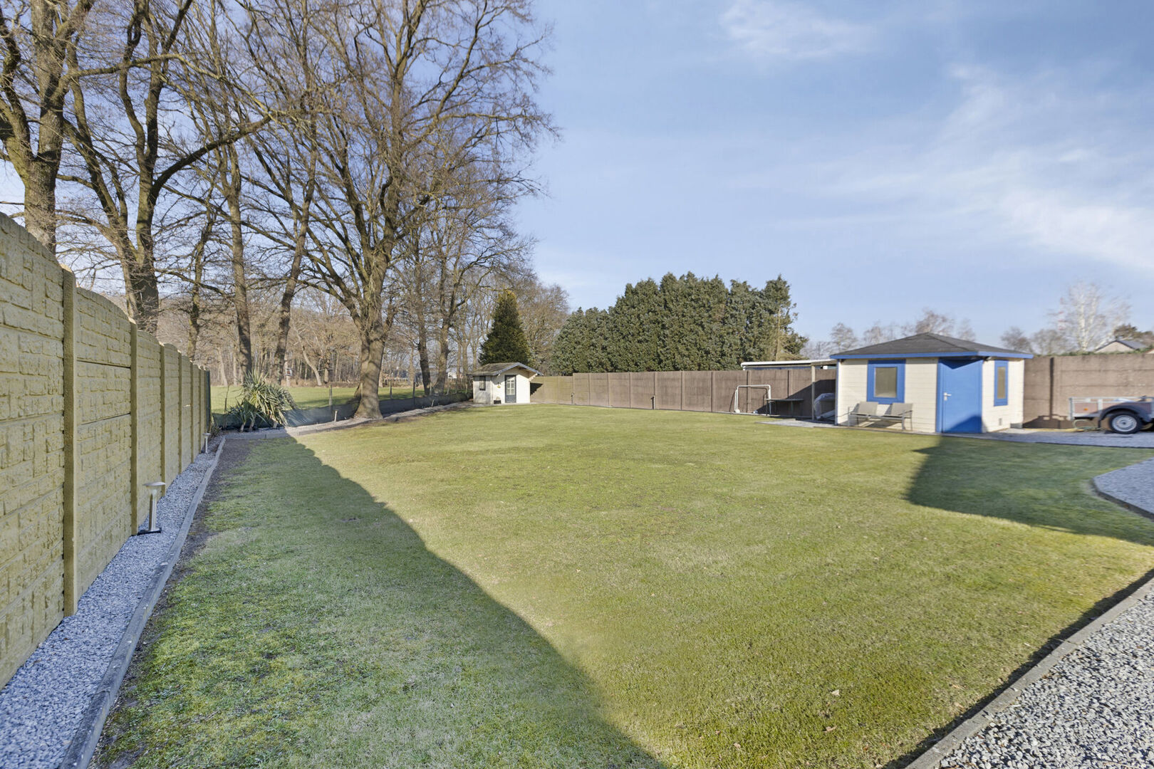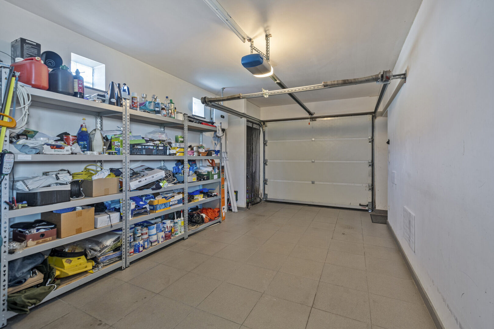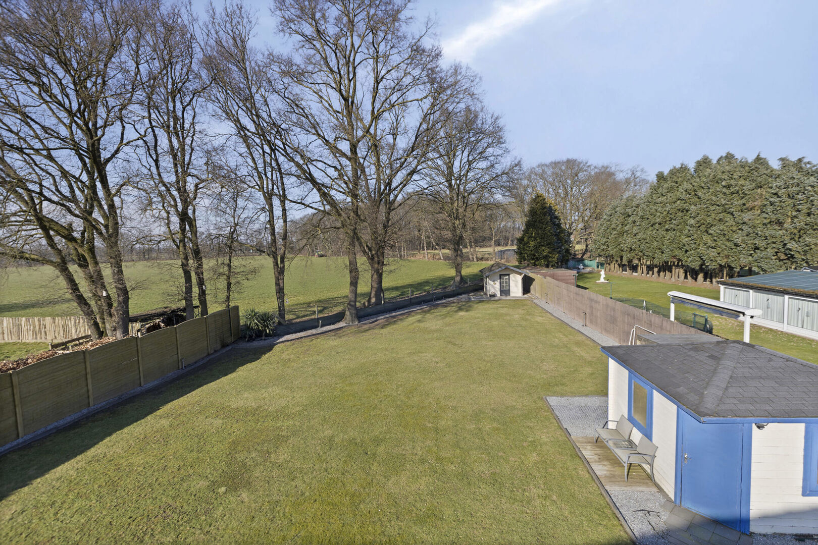 Buiten biedt de verharde oprit rechtstreeks toegang tot de inpandige garage. Aan de achterzijde bevindt zich een volledig omheinde en zeer goed onderhouden tuin met vrij zicht over de omliggende velden. Het terras is volledig overdekt en voorzien van een elektrisch zonnescreen, ideaal voor elk seizoen. Verder zijn er twee tuinhuizen, beide voorzien van een aansluiting op waterputten.