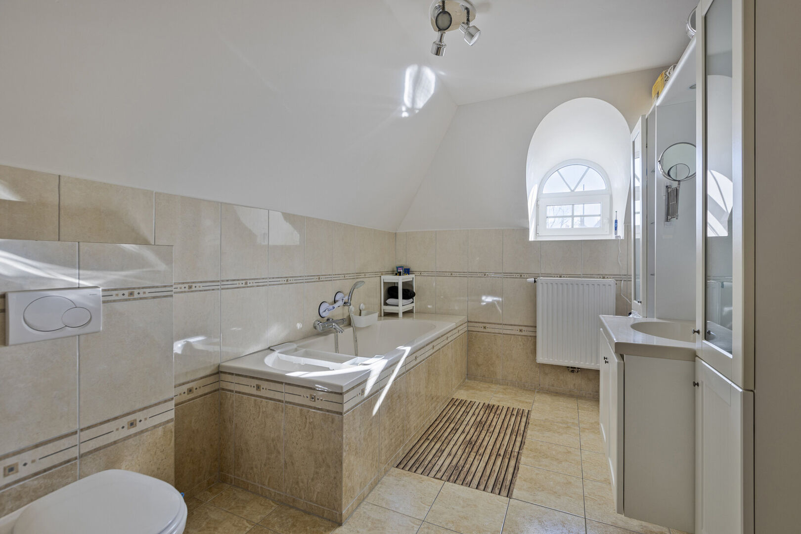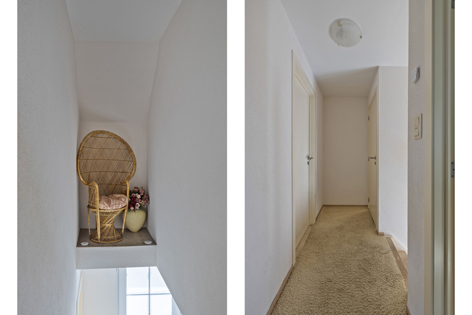 Binnenin vinden we een ruime woonkamer met veel natuurlijk lichtinval dankzij grote ramen die uitkijken op de tuin. De moderne keuken is volledig uitgerust met alle nodige apparatuur, en de badkamer beschikt over zowel een bad als een douche voor optimaal comfort. Op de eerste verdieping bevinden zich drie ruime slaapkamers en een vierde, kleinere slaapkamer c.q. hobbykamer. Daarnaast is er op het gelijkvloers een extra kamer die momenteel als kantoor wordt gebruikt, maar eveneens als slaapkamer kan worden ingericht.